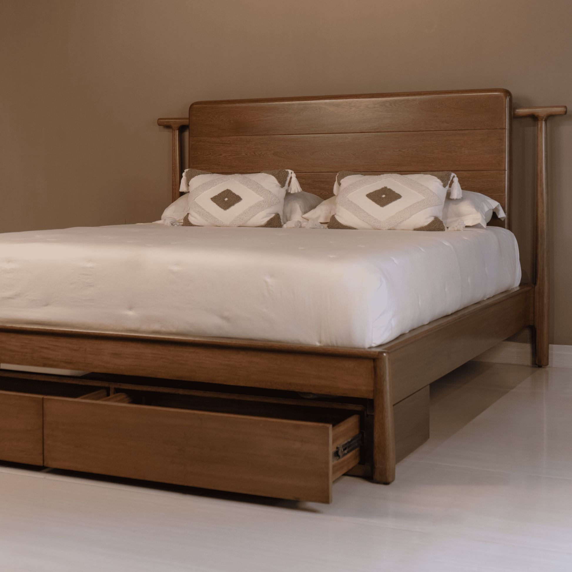 Descubre la Cama Jardín, inspirada en la belleza de los pueblos de Antioquia. Fabricada en madera sólida con diseño robusto y atemporal. Un toque colombiano auténtico para tu dormitorio. ¡Calidad y confort garantizados!