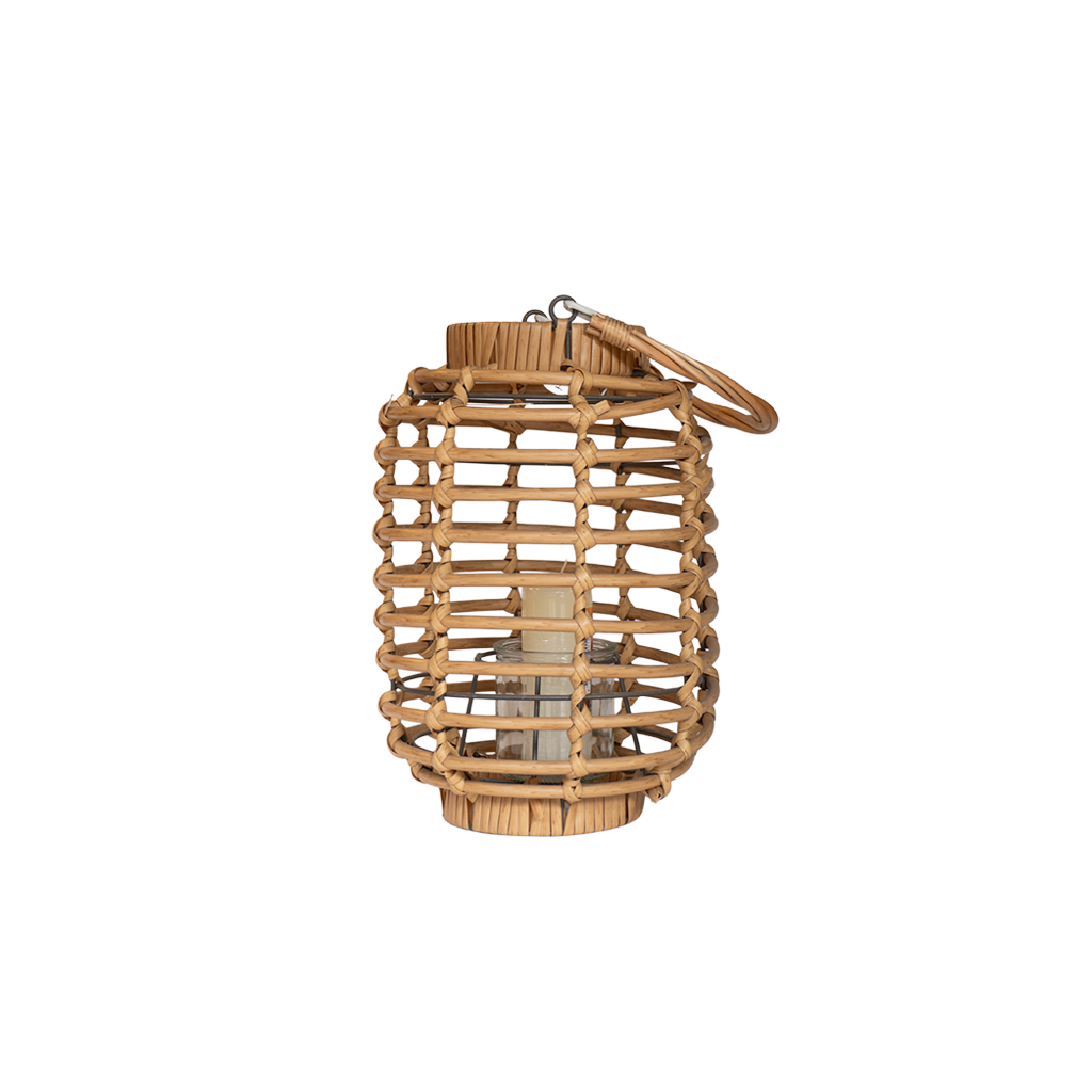 Candelabro decorativo de tamaño mediano elaborado en ratán natural. Su diseño tejido a mano permite que la luz se filtre suavemente, generando una atmósfera relajante y elegante. Perfecto para decorar salas, comedores o espacios exteriores cubiertos. Disponible en Loft Mobiliario, donde la calidez y el diseño se unen.