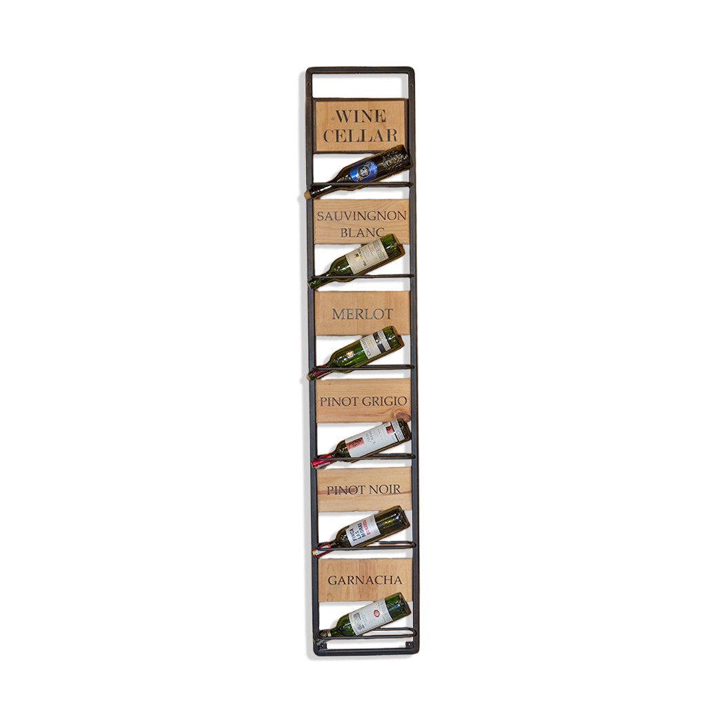 Cava de vinos para 6 botellas elaborada en madera natural y estructura metálica con acabado negro, ideal para exhibir tus vinos favoritos con estilo. Su diseño vertical ahorra espacio y combina la calidez de la madera con la solidez del metal, aportando un toque industrial y sofisticado a tu bar o comedor. Perfecta para amantes del vino que buscan una pieza funcional y decorativa. Encuéntrala en Loft Mobiliario y eleva tu espacio con diseño y personalidad.