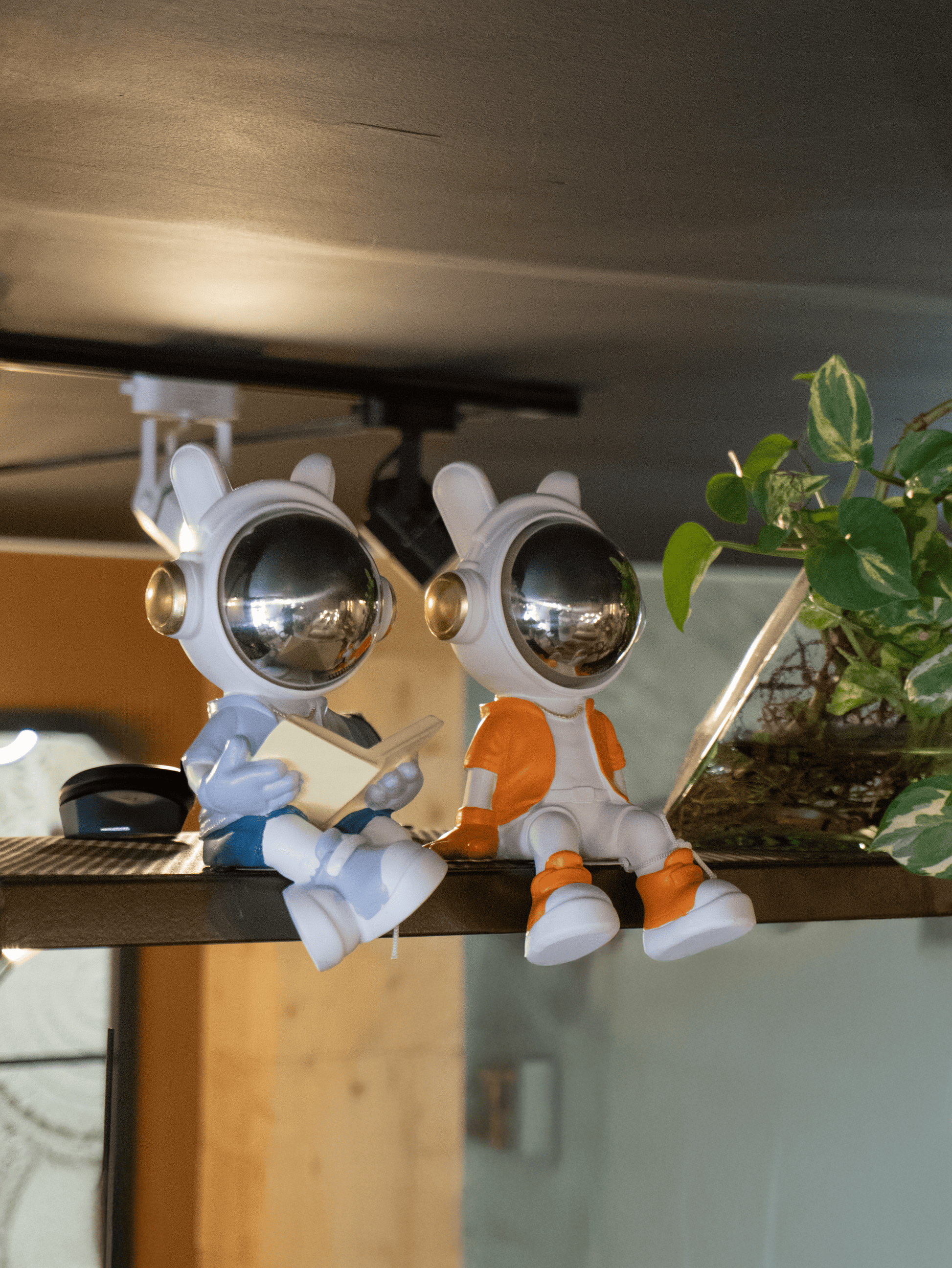 Nuestra Figura Decorativa de Astronauta en resina es una pieza única para añadir un toque de encanto cósmico y personalidad a tu hogar. Su diseño detallado y versátil es ideal para complementar escritorios, estanterías o mesas auxiliares, aportando un acento original y soñador a cualquier habitación.