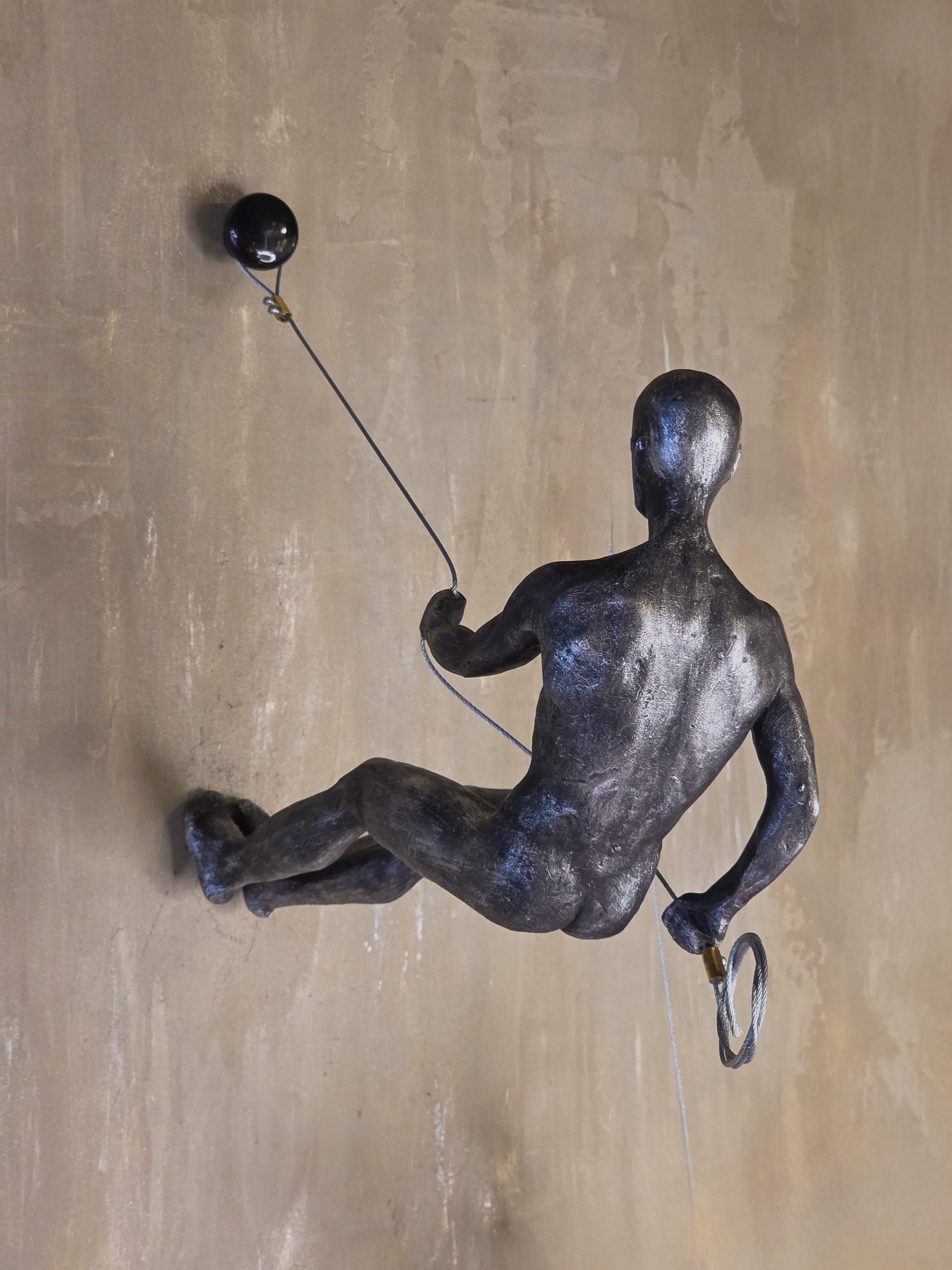 Los Escaladores Decorativos son esculturas modernas ideales para darle un toque artístico y dinámico a tus paredes. Fabricadas en resina con acabado metálico, estas figuras de hombres trepando aportan movimiento y profundidad visual a cualquier espacio. Son perfectas para decorar salas, estudios u oficinas con estilo contemporáneo y creativo. Cuerda metalica hasta 1 metro.