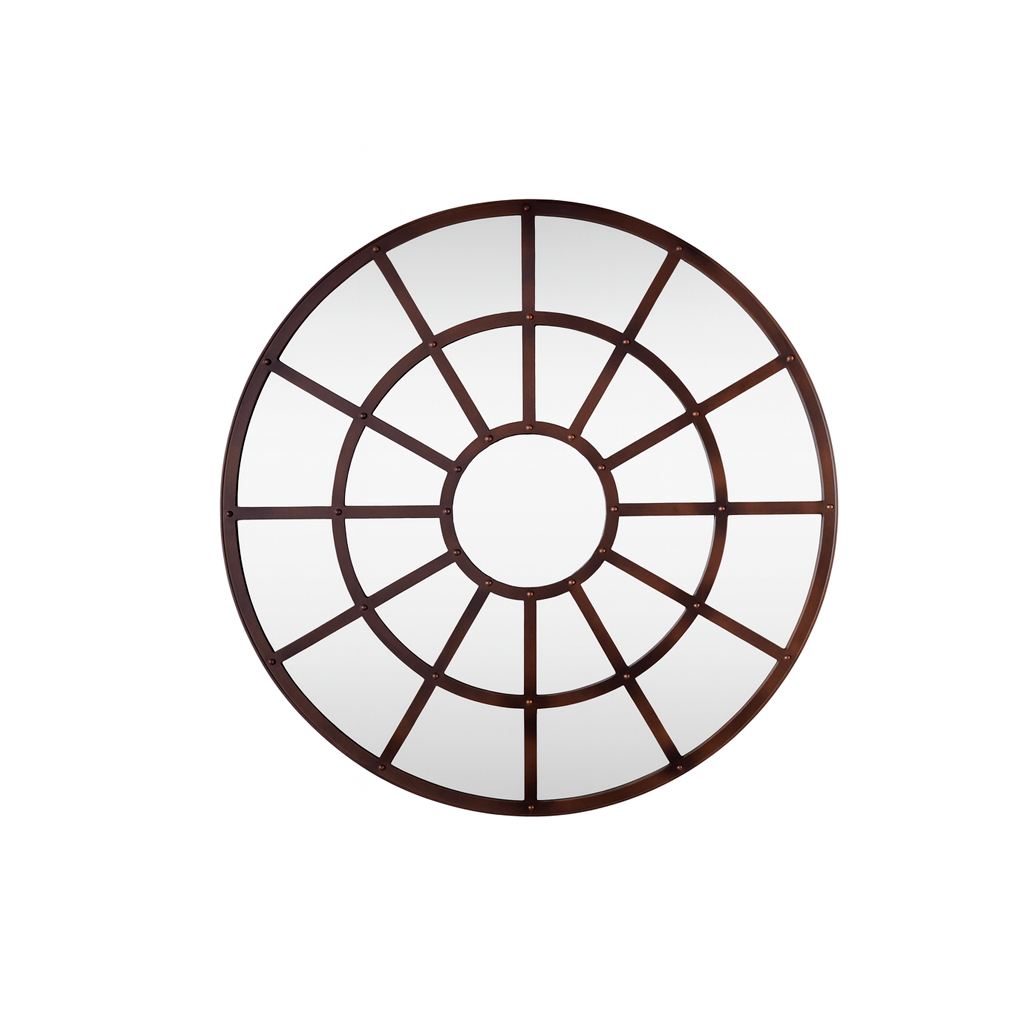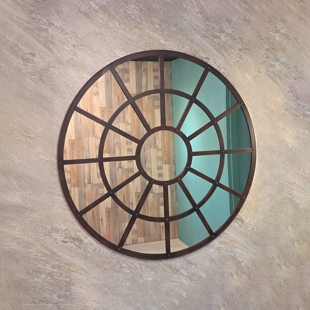 El Espejo Horizonte es un espejo redondo metálico tipo ventana, ideal para decoración de pared en salas, comedores o recibidores. Su estructura de metal oscuro con divisiones geométricas crea un estilo industrial único que aporta amplitud y carácter a cualquier espacio.