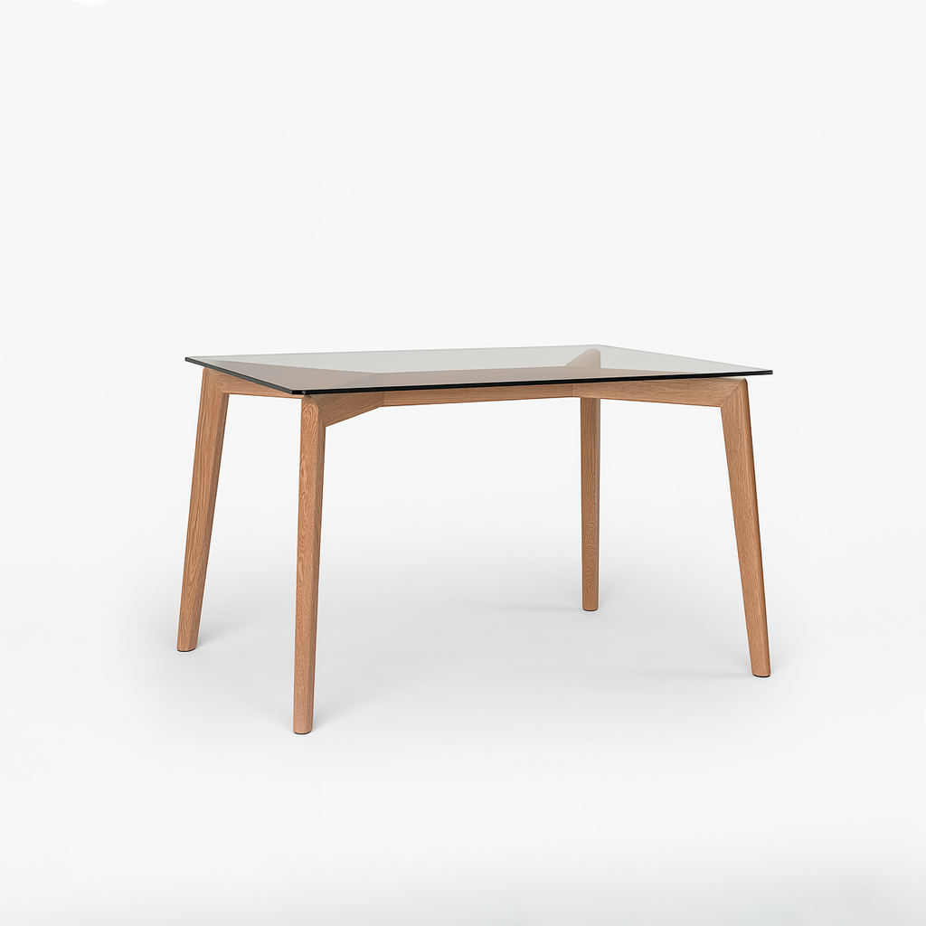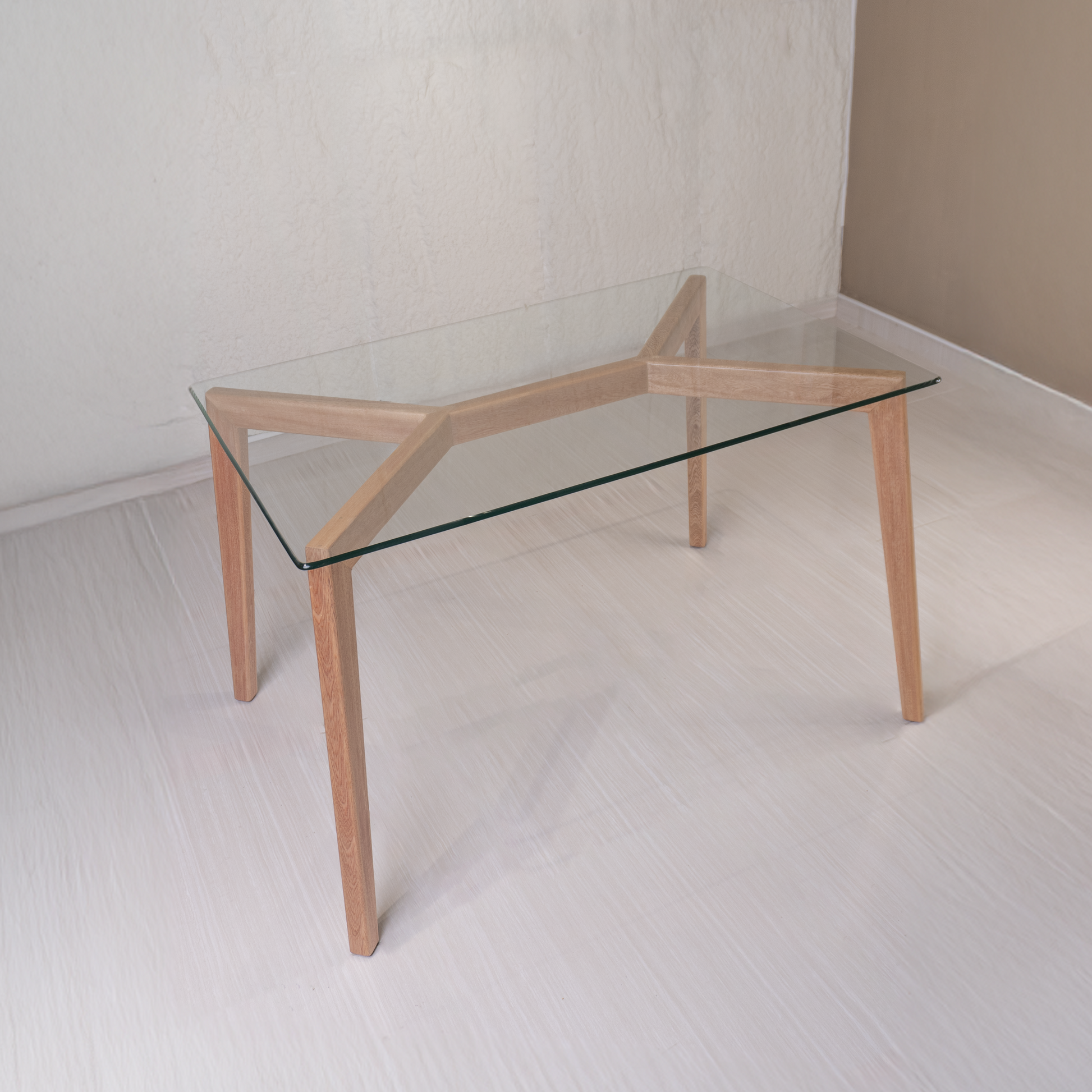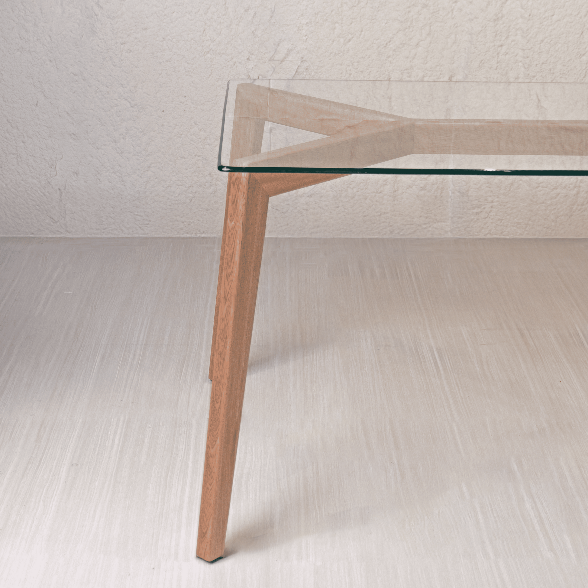 La Mesa ECO es una pieza de diseño que combina la calidez de la madera de roble natural con la elegancia del vidrio crudo de 10mm. Su estructura minimalista y patas cónicas la hacen ideal como mesa de comedor o escritorio, creando un ambiente luminoso y contemporáneo en cualquier hogar u oficina.